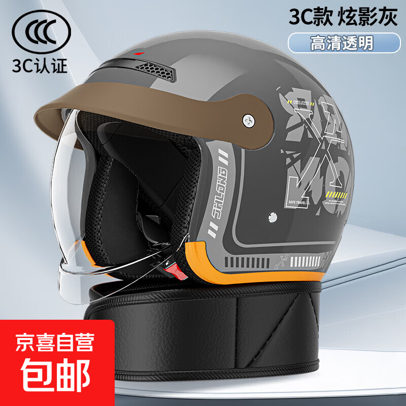 3C认证电动摩托车头盔内推式男女四季通用半盔冬季保暖骑行安全帽 灰色-网红