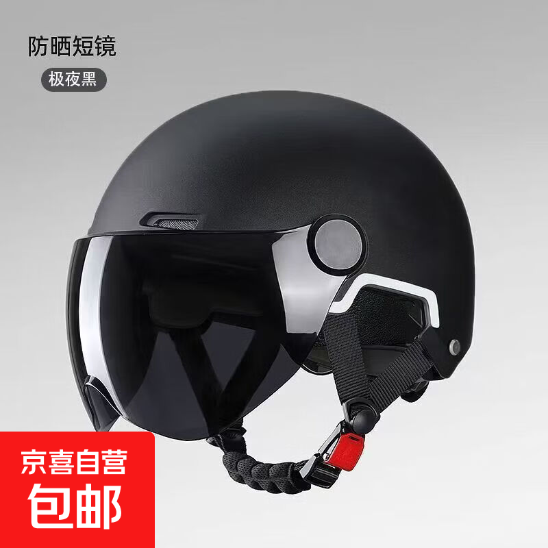 3c认证电动车头盔新国标通用女男士电瓶车防晒四季镜片夏季安全帽 3C认证 黑色【送防晒短镜】