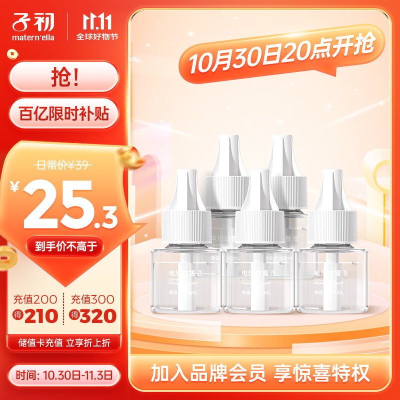 子初电蚊香液45mlx5瓶(不含器)补充液驱蚊水无香型驱蚊液基孔肯雅热