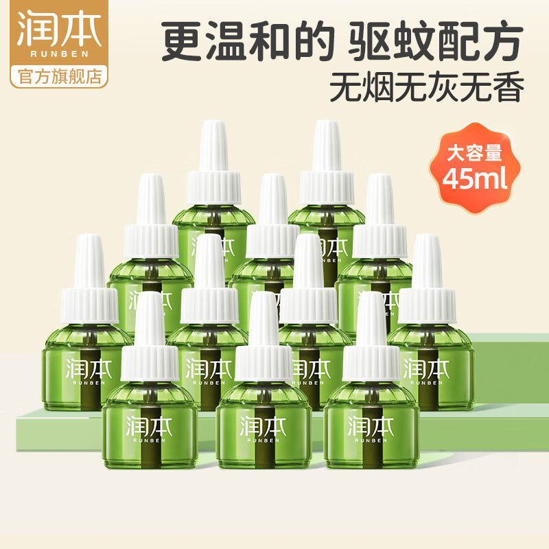 润本(RUNBEN)电蚊香液无味无香驱蚊液室内驱蚊补充液套装插电式电蚊香 无香型45ml 12瓶 (无器)
