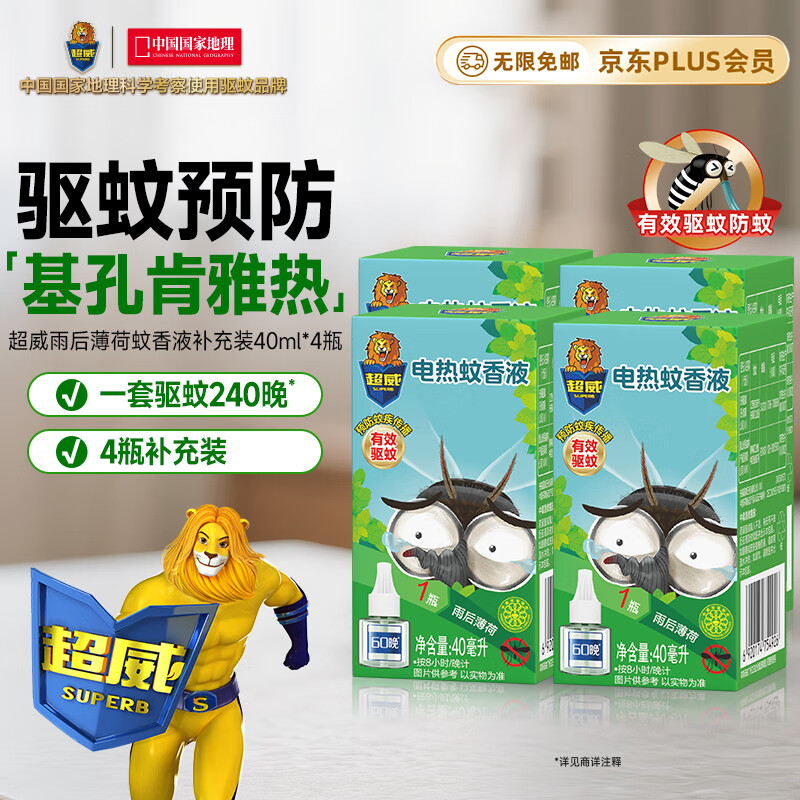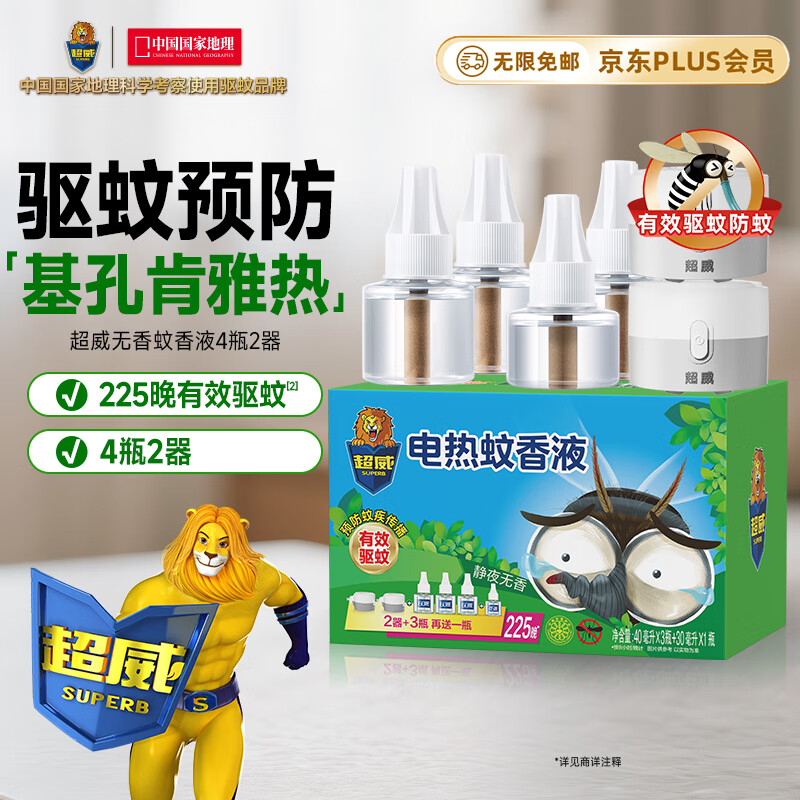 超威(SUPERB)电蚊香液基孔肯雅热灭蚊器无香驱蚊防蚊液225晚补充液4瓶2加热器