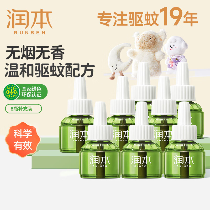 润本(RUNBEN)电热蚊香液无味无灰定时驱蚊器电蚊香防蚊液补充液无香型 45ml 8瓶 无器【热销爆款】补充装