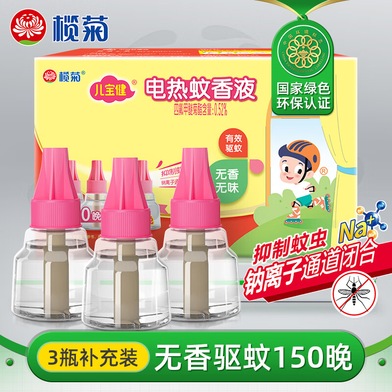 榄菊儿宝健电蚊香液3瓶150晚补充装无香型电蚊香驱蚊蚊香液防蚊补充液