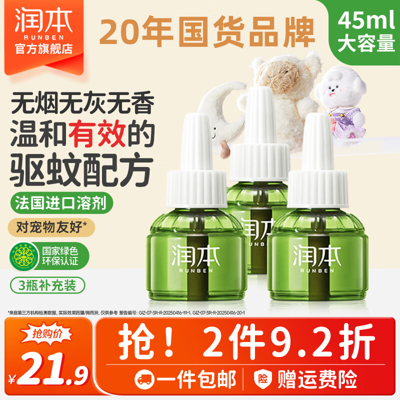 润本(RUNBEN)电热蚊香液无味无灰定时驱蚊器电蚊香防蚊液补充液无香型 3瓶 无器【续航驱蚊】补充装
