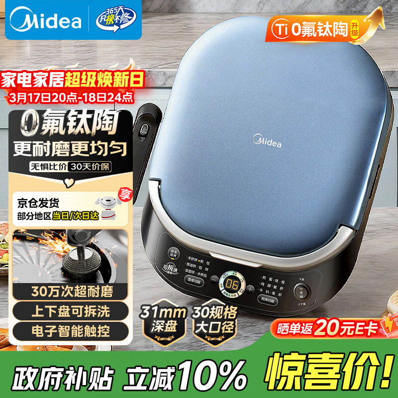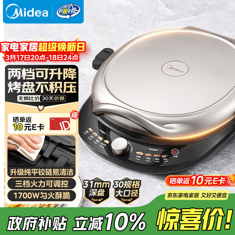 美的(Midea)【价低超头主播95折】电饼铛双面加热煎烤机烙饼锅加大加深煎饼薄饼机多功能升降烤盘JKE30T78