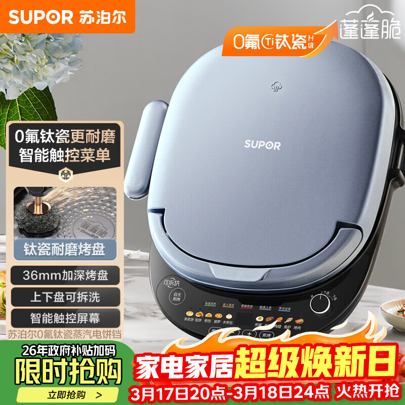 苏泊尔(SUPOR)电饼铛 上下盘可拆洗 家用智能电饼档双面加热 早餐机煎烤机烙饼锅煎饼锅 0氟钛瓷烤盘 JD30RQ807
