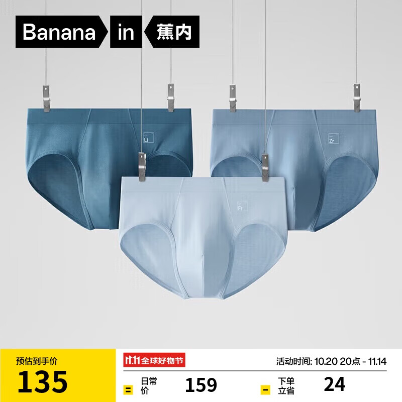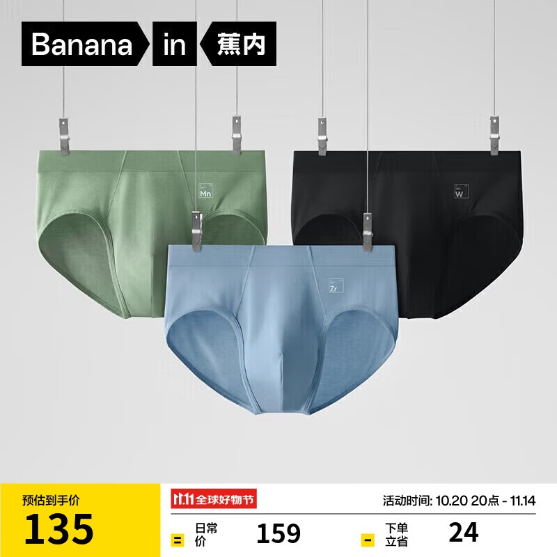 蕉内银皮301P男士三角内裤天丝莫代尔棉裆7A抗菌冰丝透气四季礼盒3件