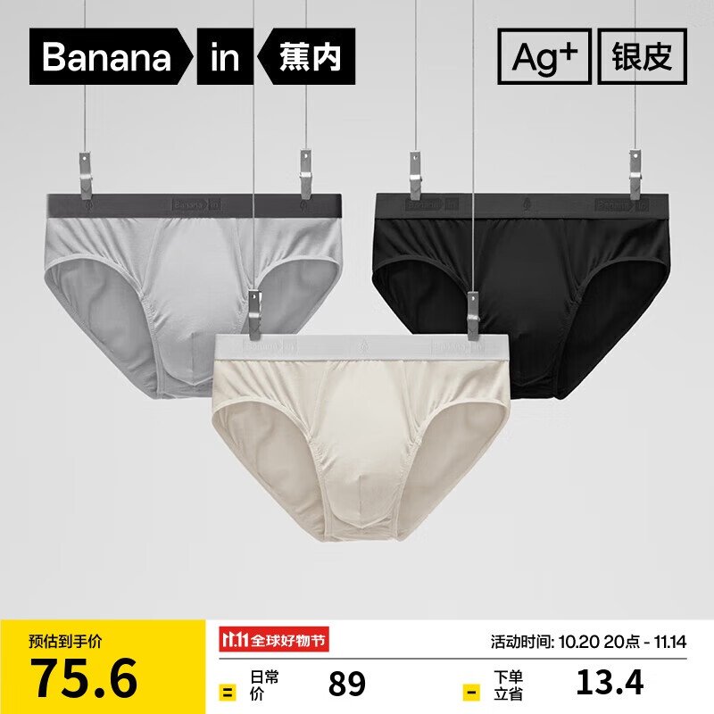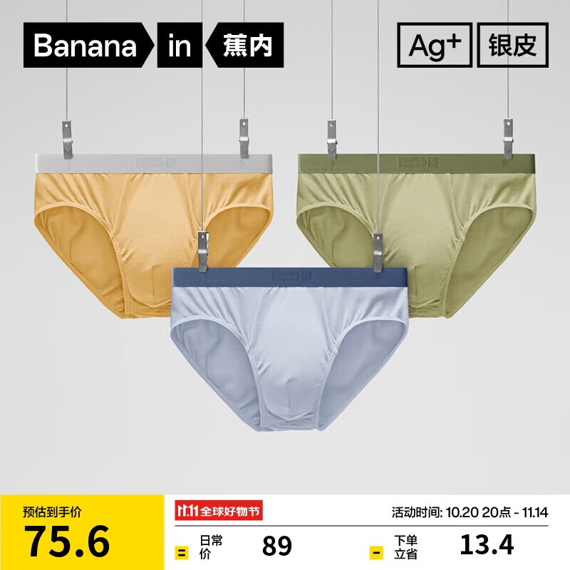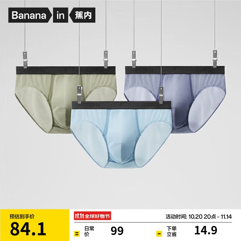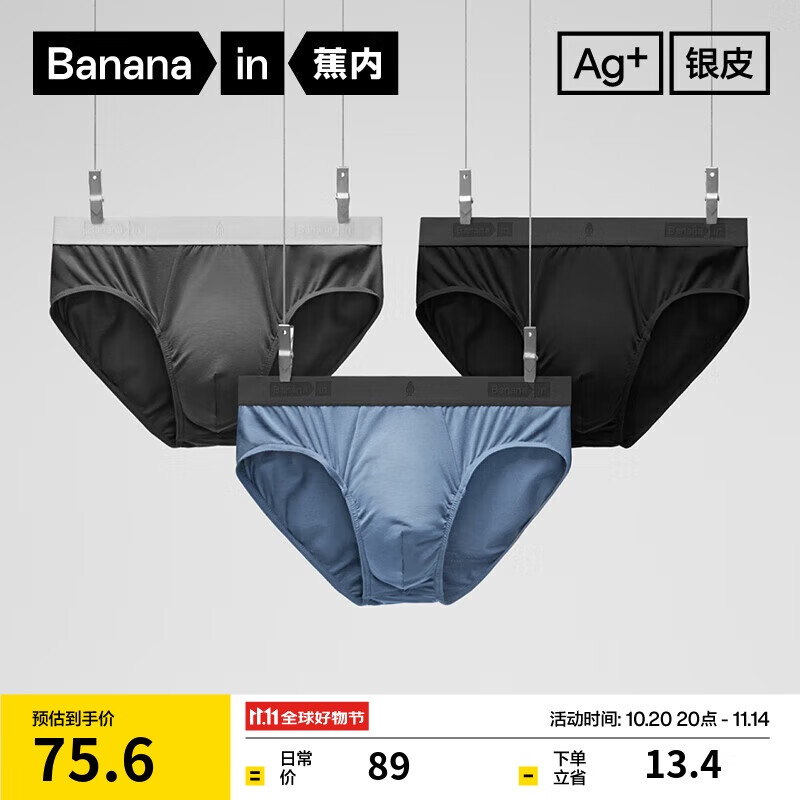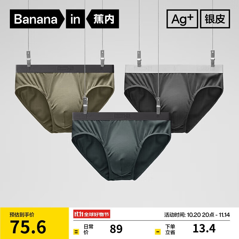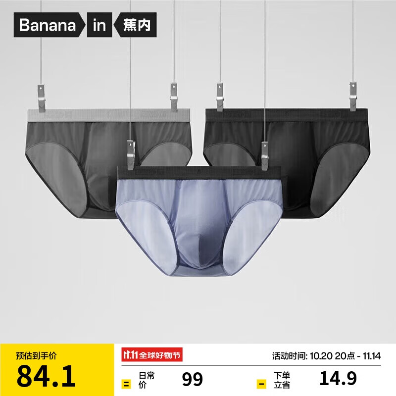 蕉内银皮500E男士三角内裤10A抗菌80支天丝莫代尔轻薄无痕透气冰丝3件