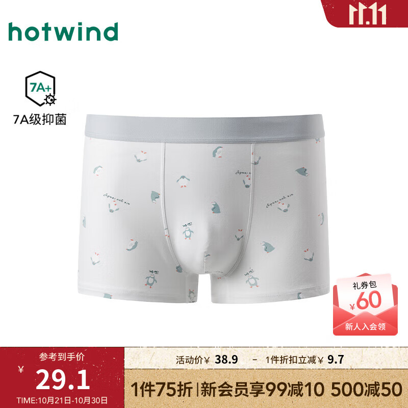 热风【商场同款】男士内裤2025年秋新款小企鹅棉氨抑菌亲肤平角内裤 27深兰 L