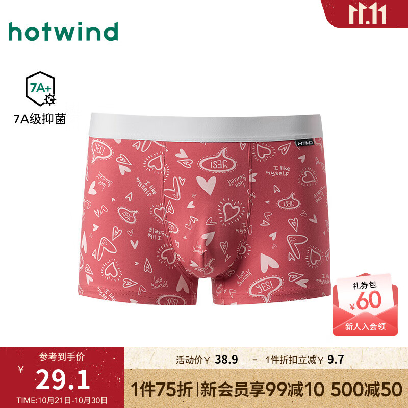 热风男士内裤2025年秋季新款字母爱心平角内裤抑菌亲肤平角内裤棉 21红白 M