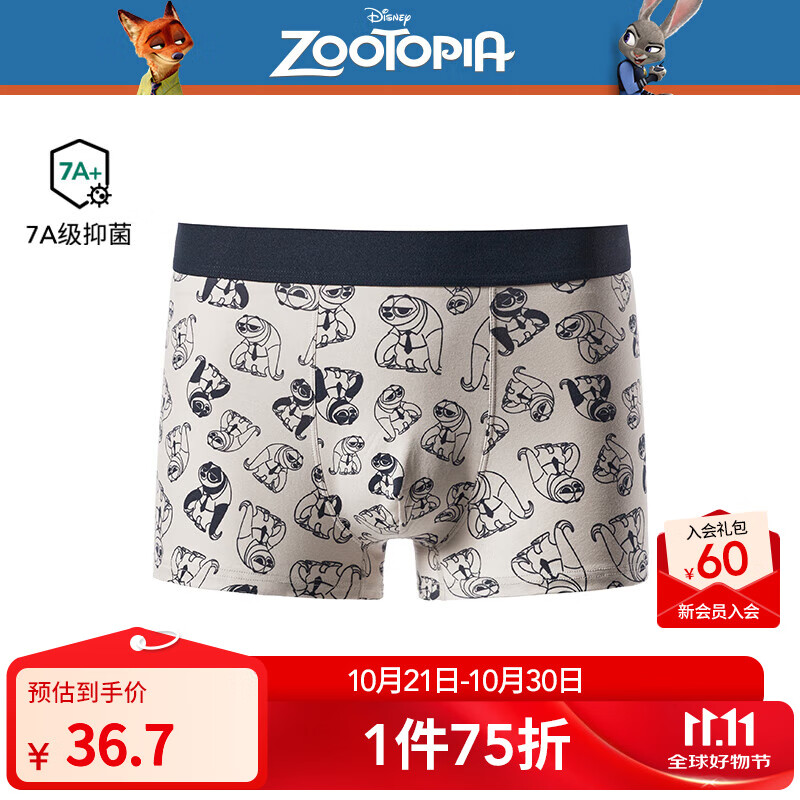 热风【迪士尼系列】男士内裤2025年秋季新款线稿印花抑菌平角内裤 60浅灰 1条 XL