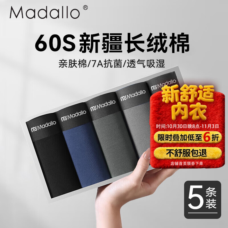 莫代尔5条男士内裤男纯棉抗菌平角透气大码男生短裤头男式四角裤衩