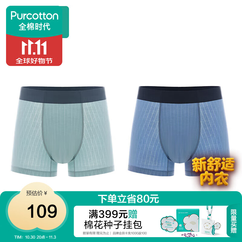 全棉时代男士内裤男四角短裤超薄抗菌弹力2条装 白青+黛蓝 185