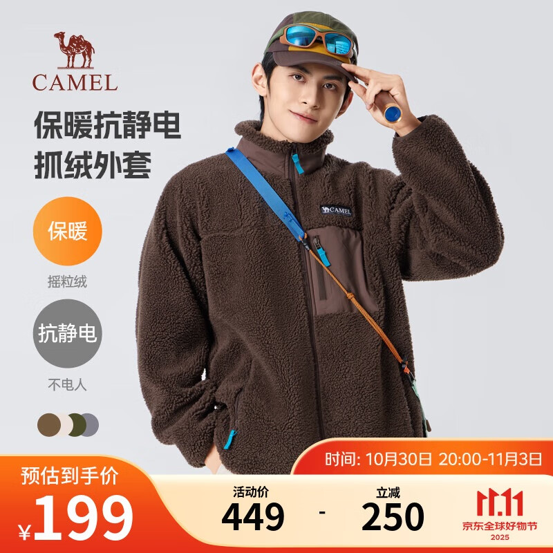 骆驼(CAMEL)男装摇粒绒外套男秋冬季加绒夹克时尚休闲保暖抓绒衣M34CA22741