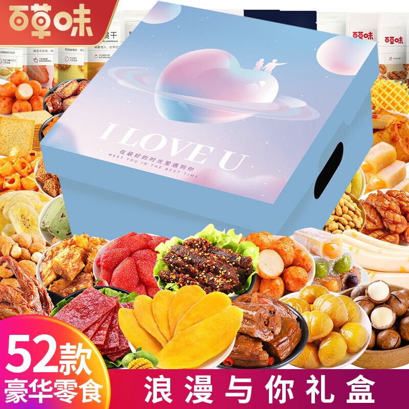 百草味零食大礼包送女友礼物巨型肉干肉脯卤味坚果解馋小吃生日礼盒 52款心意零食大礼包【浪漫与你豪华礼盒】
