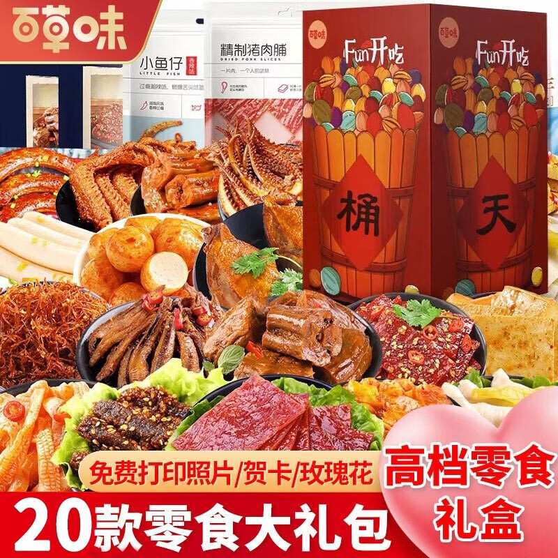百草味零食大礼包送女友礼物巨型肉干肉脯卤味坚果解馋小吃生日礼盒 20款高端豪华零食大礼包【一桶天下礼盒】