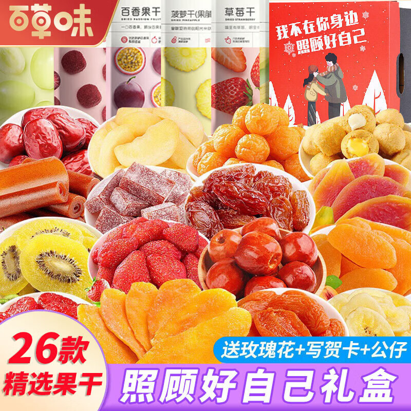 百草味水果干零食大礼包送女友礼物巨型蜜饯休闲食品草莓山楂小吃整箱盒 26款精选果干零食大礼包【照顾好自己礼盒】