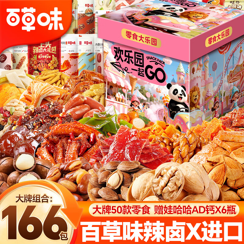 百草味零食大礼包成人整箱送女朋友生日礼物品卤味辣条坚果休闲零食礼盒 170袋巨型零食大礼包【六一快乐升级礼盒】男孩