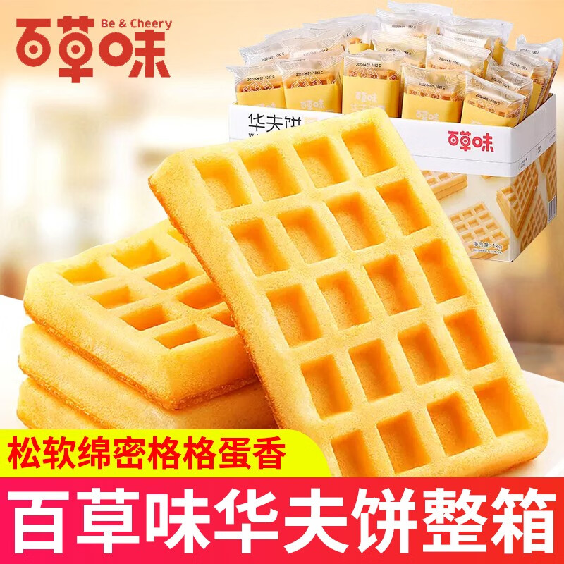 百草味华夫饼原味1000g营养学生早餐手撕面包整箱装鸡蛋糕点零食 华夫饼1000g*1箱