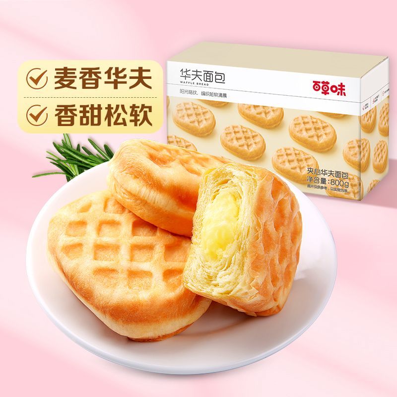 百草味夹心华夫面包800g手撕健康早餐代餐西式糕点解馋小零食400g 麦香夹心华夫面包 800g