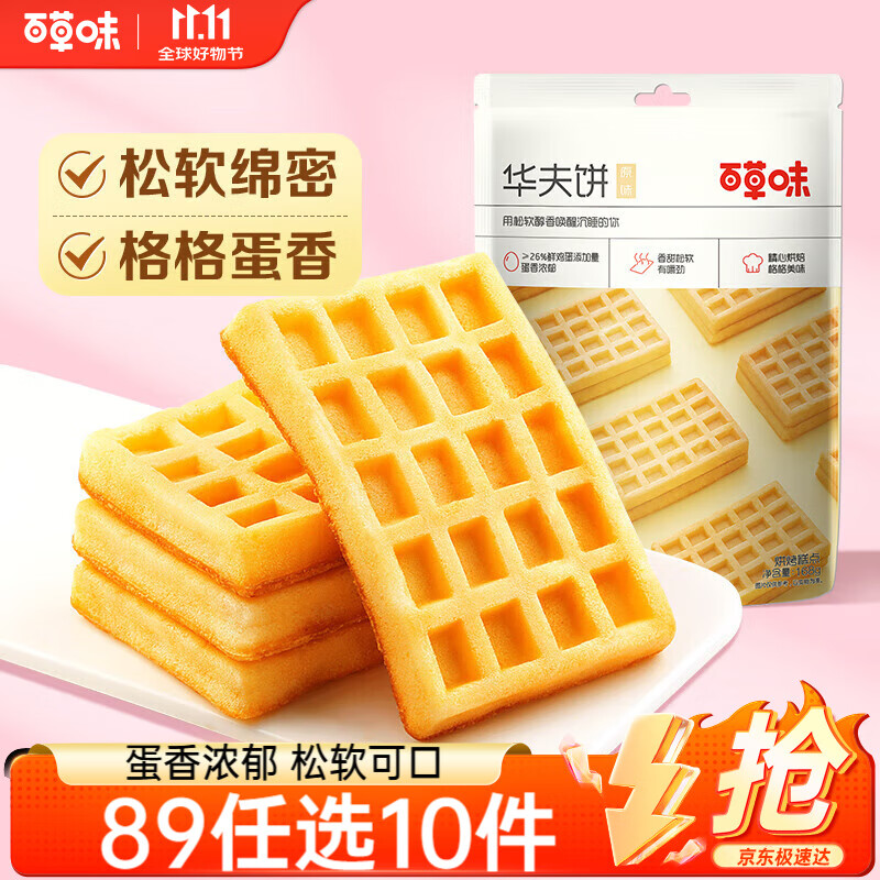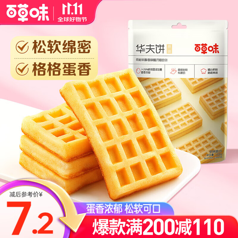 百草味华夫饼原味168g/袋 小吃休闲零食手撕面包早餐食品饼干蛋糕代餐MJ 原味