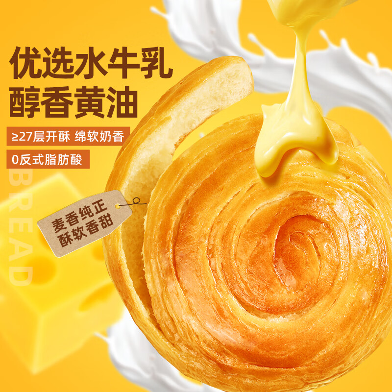 百草味水牛乳千层吐司 1kg高钙早餐面包手撕代餐饱腹零食点心