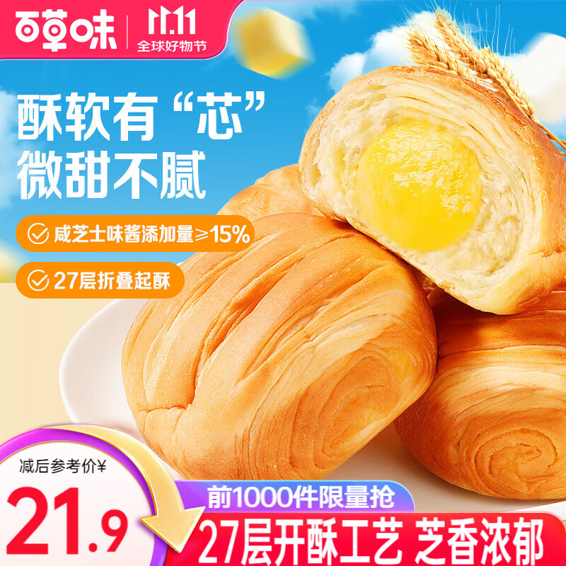 百草味 手撕面包 早餐面包零食整箱量贩休闲食品 手撕面包(芝士味)1000g-约18个