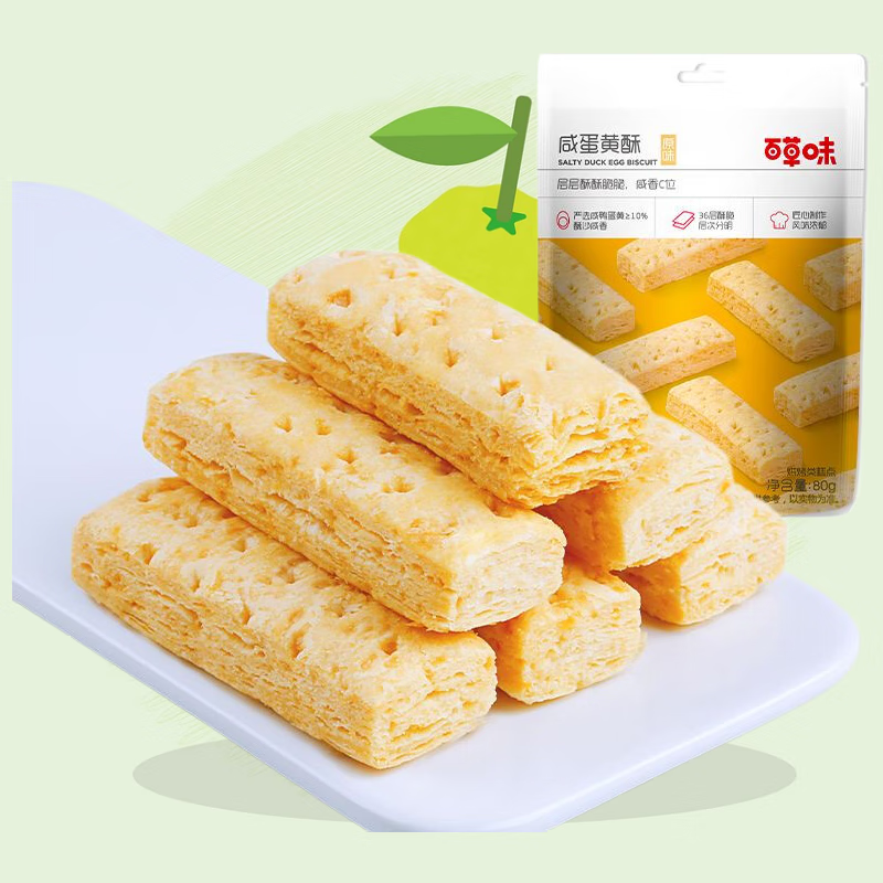 百草味咸蛋黄酥饼干80g千层酥糕点办公室早餐休闲零食解馋小吃 咸蛋黄酥饼干80g*1袋