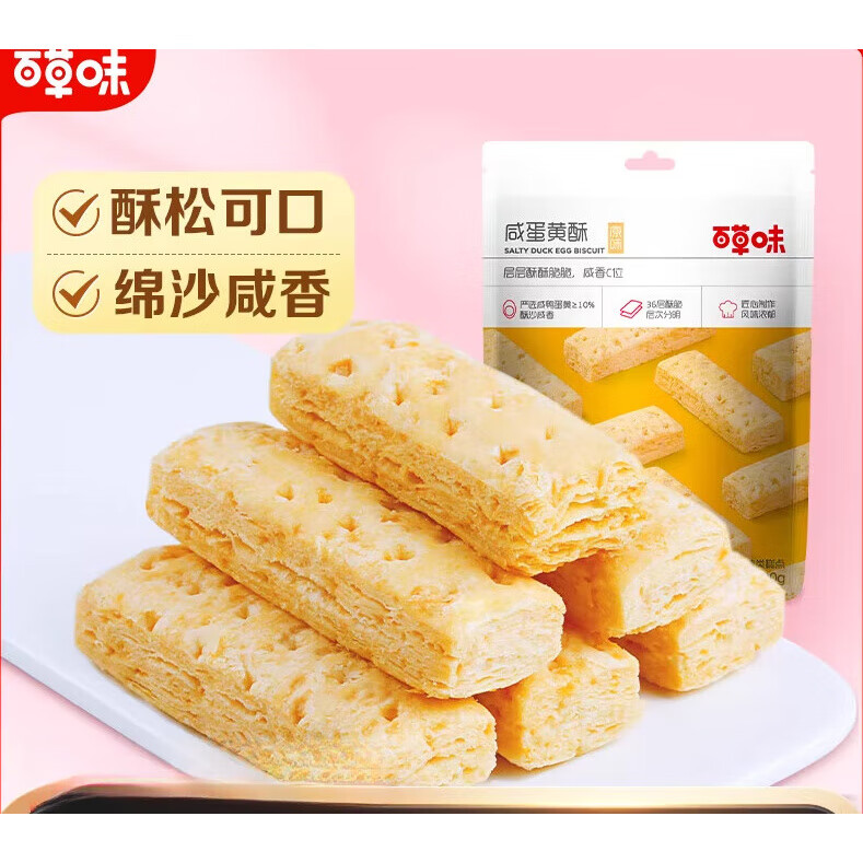 百草味【1191人好评】百草味咸蛋黄酥80g*1/3/5袋蛋卷饼干早餐学生办公 咸蛋黄酥80gx3袋