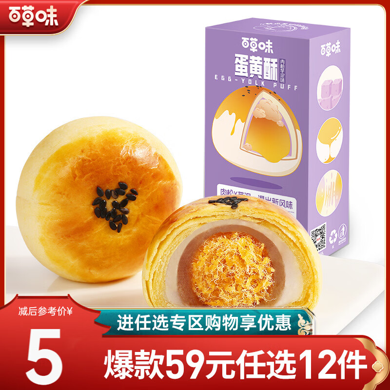 百草味 蛋黄酥100g网红手工小吃糕点美食休闲零食RX【限1件】 蛋黄酥肉松芋泥味100g