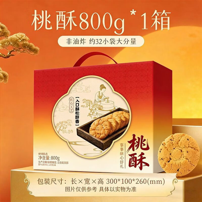 百草味桃酥礼盒800g蛋黄酥传统中式糕点零食节日送礼送长辈 百草味-桃酥800g*1盒
