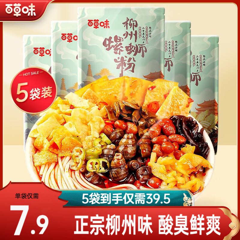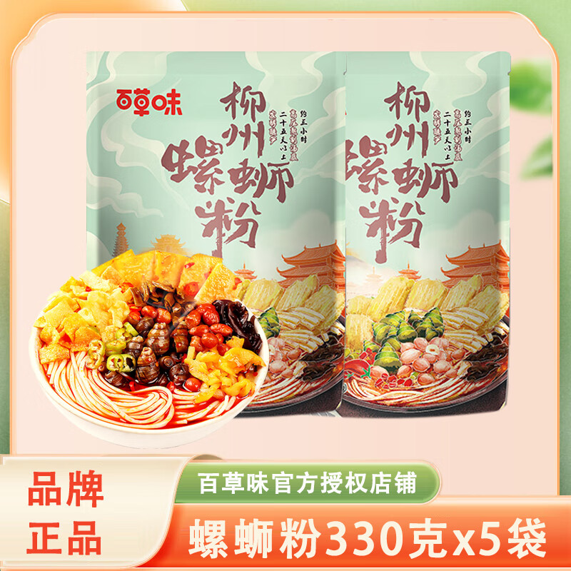 百草味螺蛳粉 正宗柳州味螺蛳粉广西柳州方便速食即食米粉米线 螺蛳粉330g*5袋