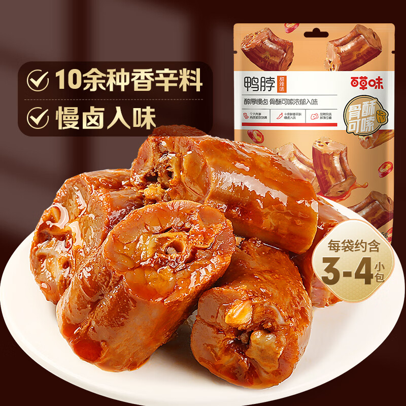 百草味鸭脖65g 休闲零食卤味熟食小吃单独小包装 RX【限1件】 甜辣味