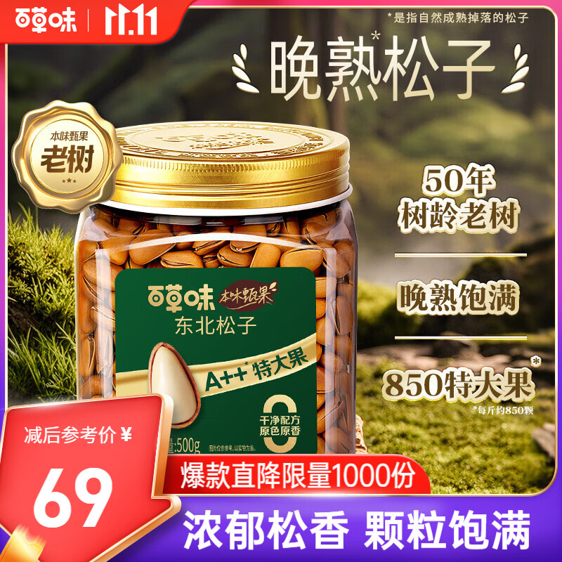 百草味本味甄果高端东北松子500g 每日坚果大颗粒干果零食罐装团购送礼