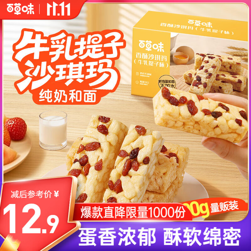 百草味香酥沙琪玛牛乳提子味500g整箱传统糕点中式糕点早餐代餐