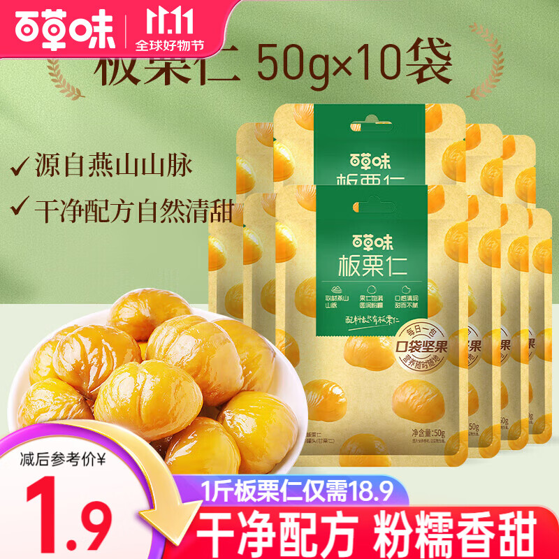 百草味 板栗仁500g 坚果炒货板栗即食栗子办公室休闲健康零食 板栗仁50g*10包