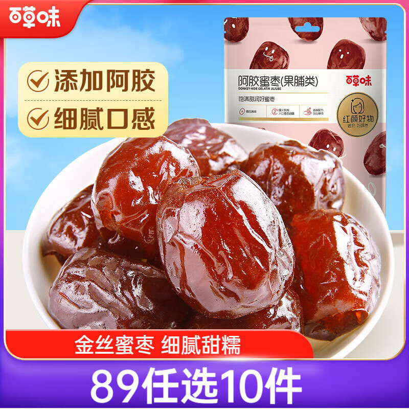 百草味 红枣蜜饯果干休闲零食 果干去核特产枣子 阿胶蜜枣228g/袋