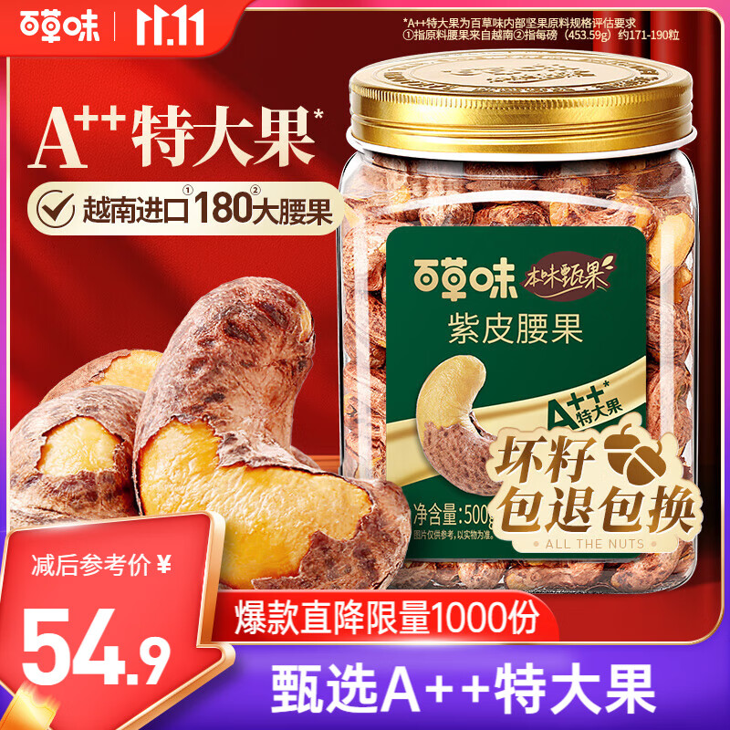 百草味紫皮腰果 坚果炒货袋装大颗粒休闲零食 紫皮腰果500g/袋