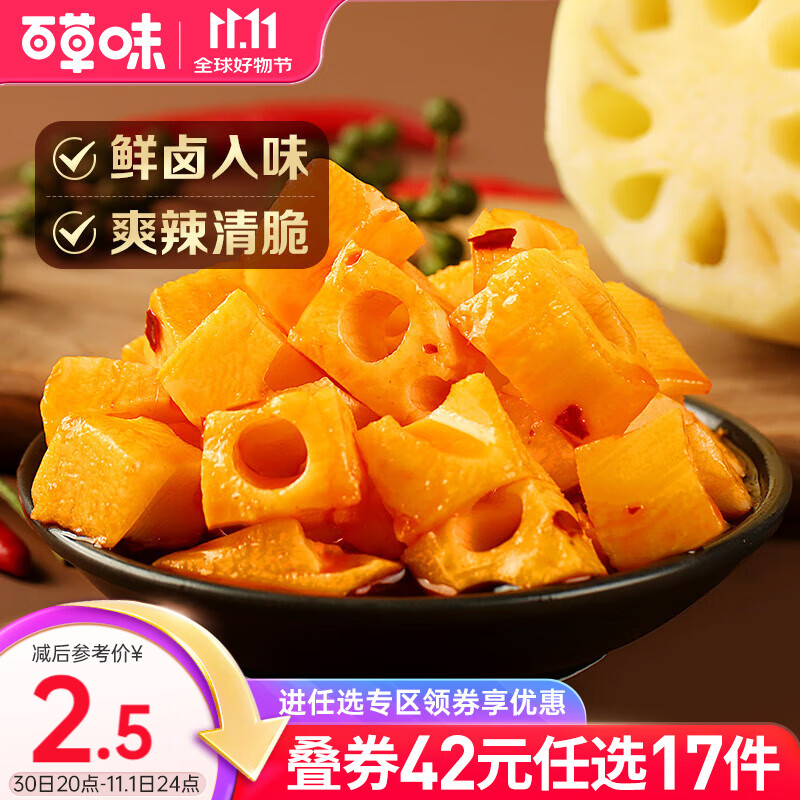 百草味香辣卤藕100g 脆藕香辣零食小吃RX 香辣卤藕100g