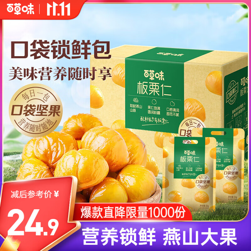 百草味熟制板栗仁500g/10小包 坚果炒货休闲零食坚果板栗子仁即食