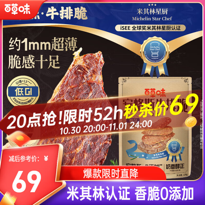 百草味安格斯牛排脆原味135g健康牛脆脆牛肉干休闲零食