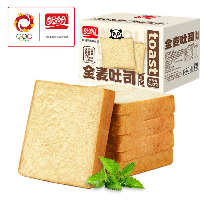 盼盼全麦吐司面包900g整箱早餐粗粮运动代餐饱腹感手撕面包糕点 全麦吐司24包