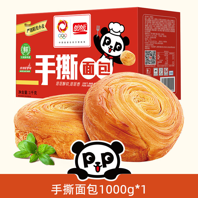 手撕面包整箱1000g早餐代餐饱腹食品蛋糕零食速食充 盼盼 手撕面 面包1000g (约25个) 1000g