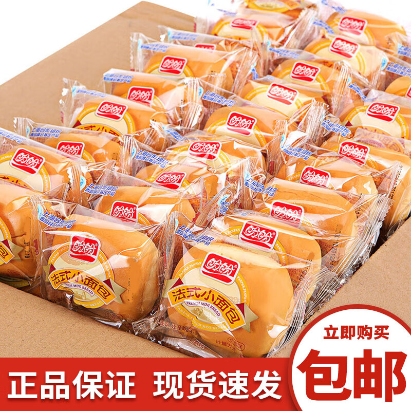 盼盼盼盼法式小面包整箱软面包早餐速食充饥夜宵健康零食小吃休闲食品 奶香法式小面包1000g约50包 整箱