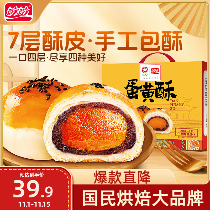 盼盼主播盼盼蛋黄酥1kg礼盒整箱咸蛋黄早餐办公室糕点 蛋黄酥礼盒1kg含20枚