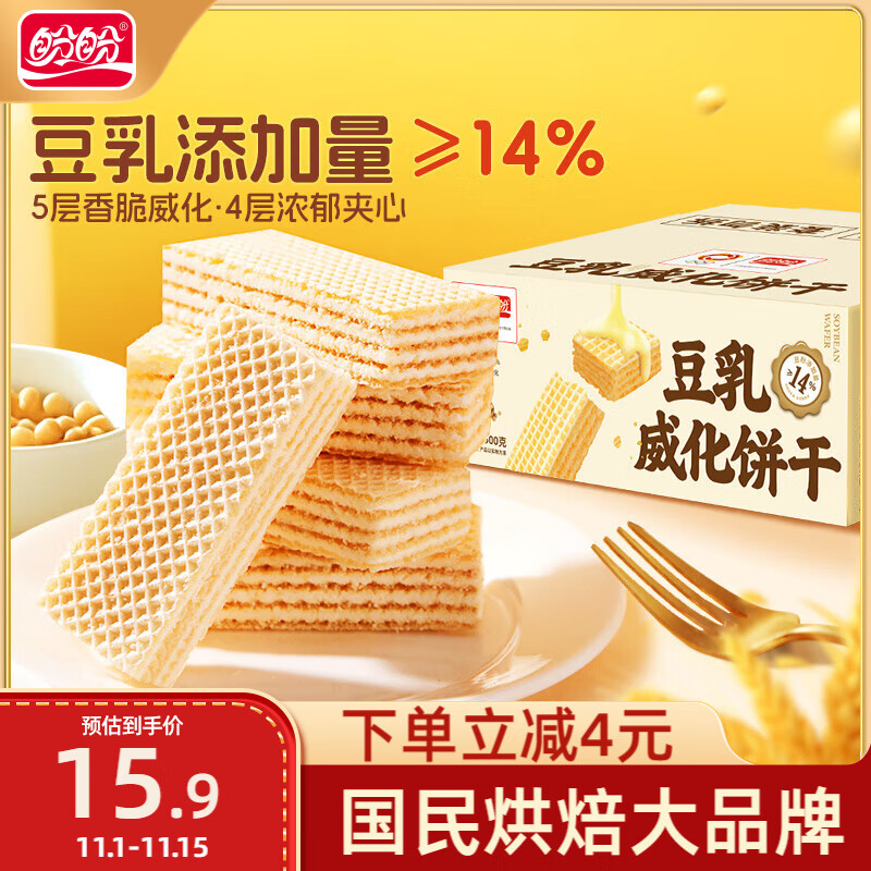 盼盼威化饼干 休闲零食早餐食品夹心饼干下午茶膨化 豆乳味 500g/箱