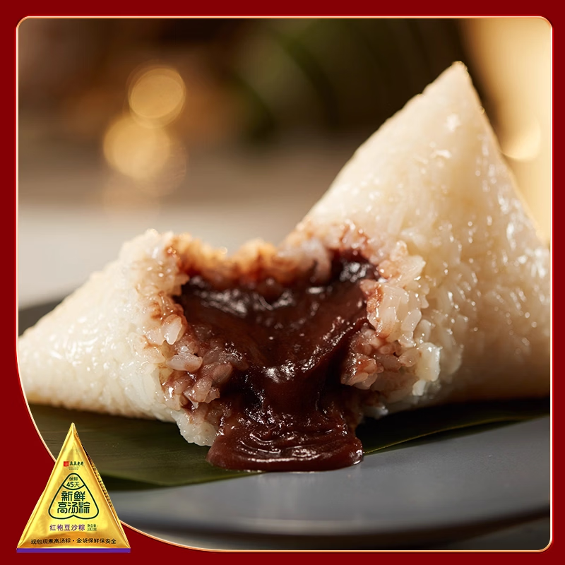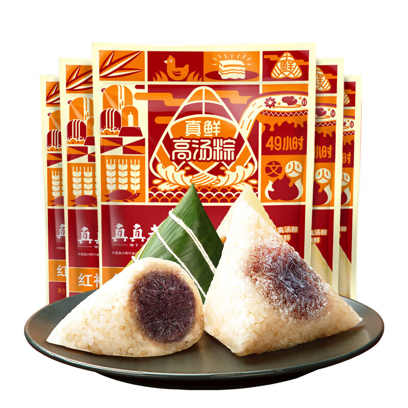 真真老老嘉兴粽子老字号肉粽子高汤蛋黄肉粽短保锁鲜粽子真空端午浙江特产 【短保小金袋】红袍豆沙140g*8