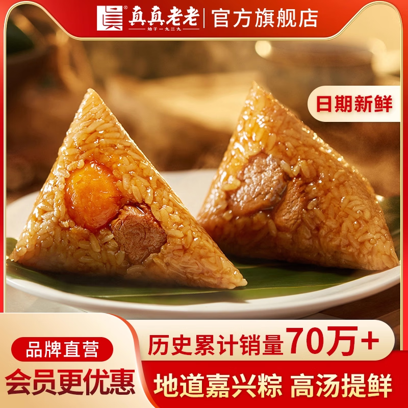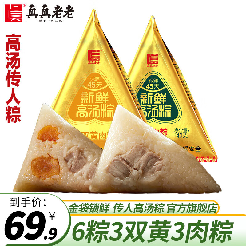 真真老老嘉兴粽子老字号传人大肉粽高汤新鲜粽子短保端午节浙江嘉兴特产 【传人粽】双黄肉3只+大肉3只