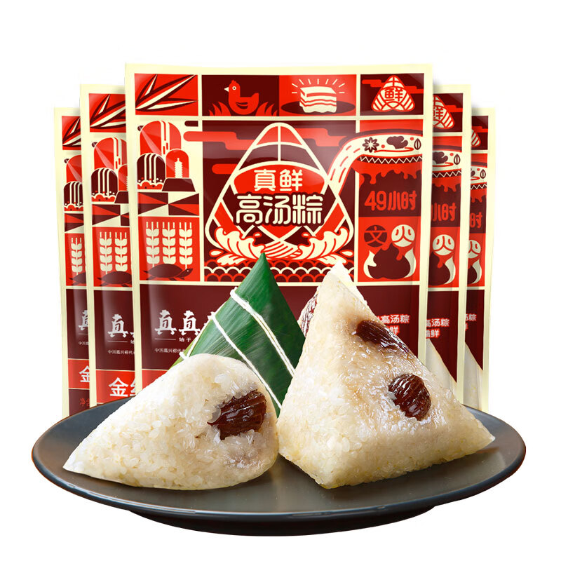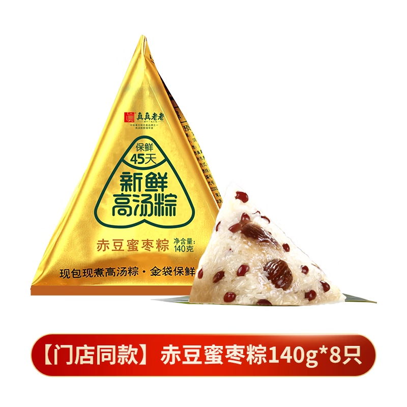 真真老老嘉兴粽子老字号肉粽子高汤蛋黄肉粽短保锁鲜粽子真空端午浙江特产 【短保小金袋】赤豆蜜枣140g*8