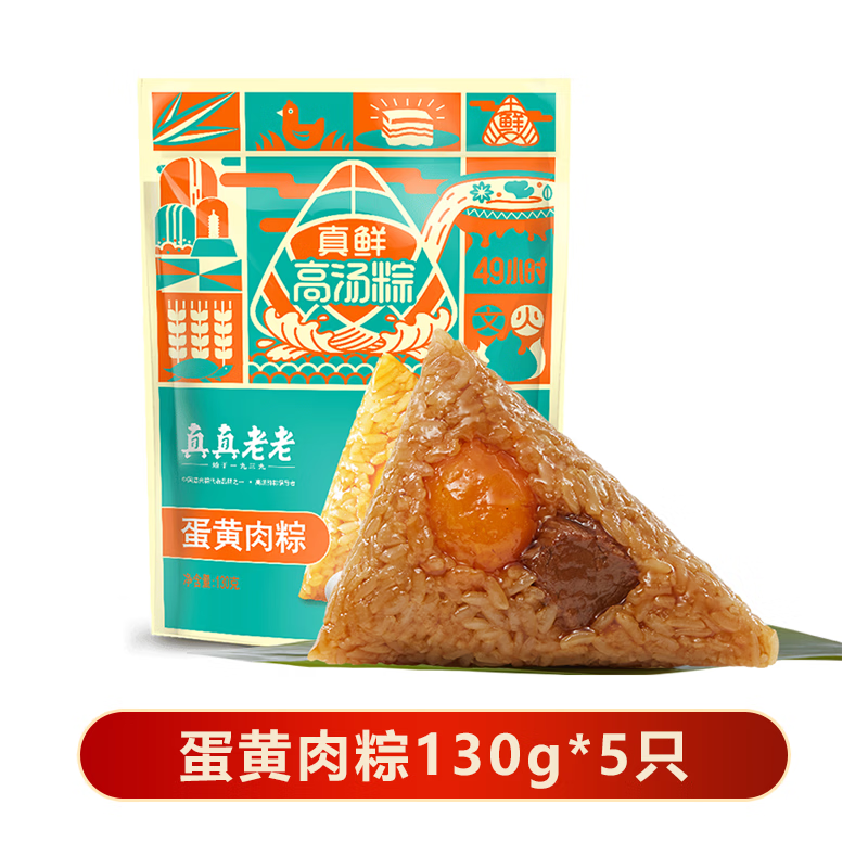 真真老老 粽子 嘉兴肉粽 经典蛋黄肉粽 高汤提鲜 老字号 端午佳选礼 130g*5蛋黄鲜肉粽【店长主推】